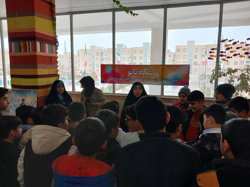 در بخش نانوی این نمایشگاه، محصولات، مفاهیم و بازیهای علمی دانش آموزی حوزه نانو، توسط زینب احسن، از برگزیدگان المپیاد نانو برای بازدیدکنندگان تشریح شد که این بخش مورد توجه مربیان و دانشآموزان بازدیدکننده از مدارس استان قم قرار گرفت.
